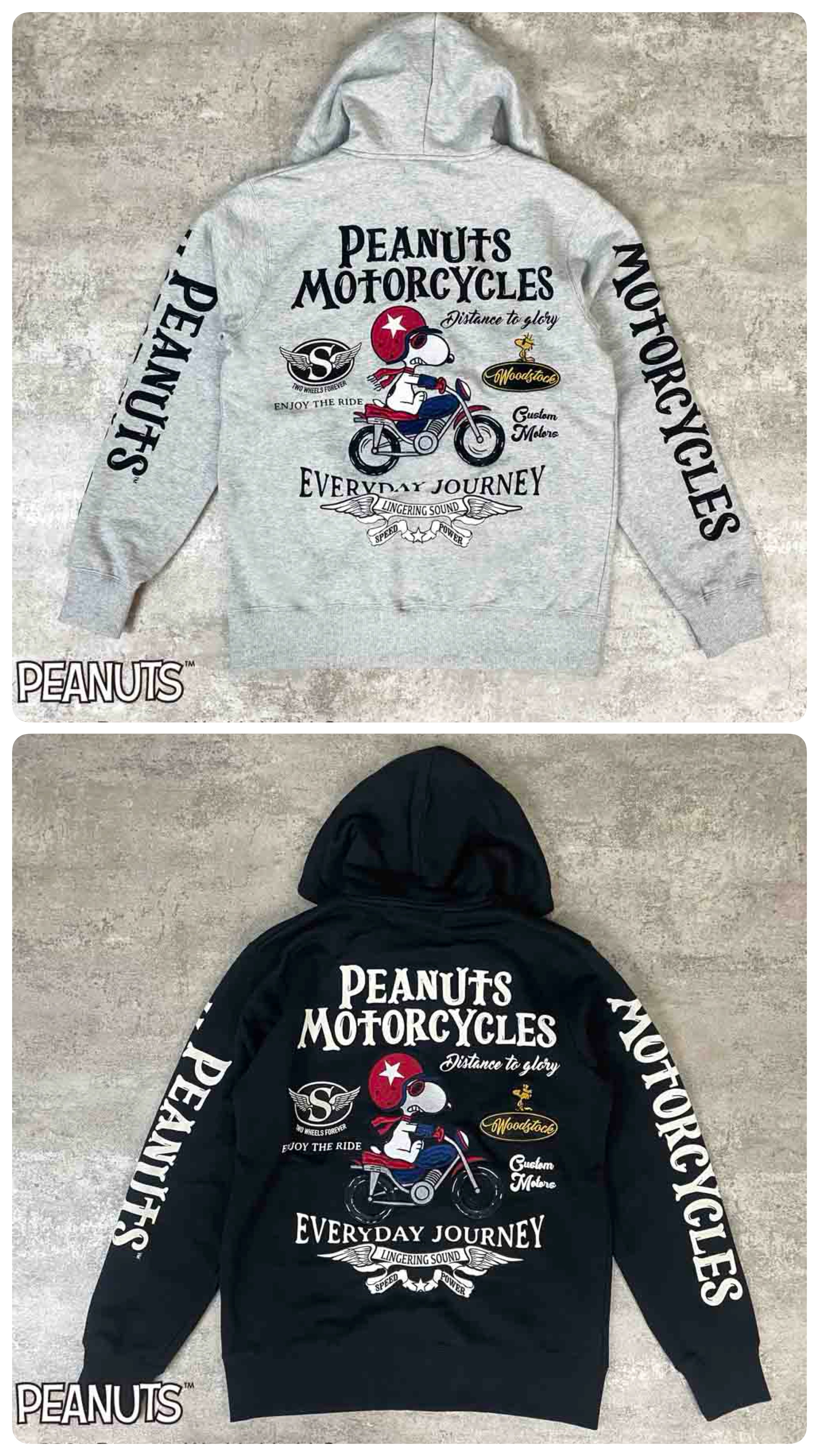 袖のPEANUTS MOTORCYCLEのロゴでワイルドさをプラスした最高の一着です♪
