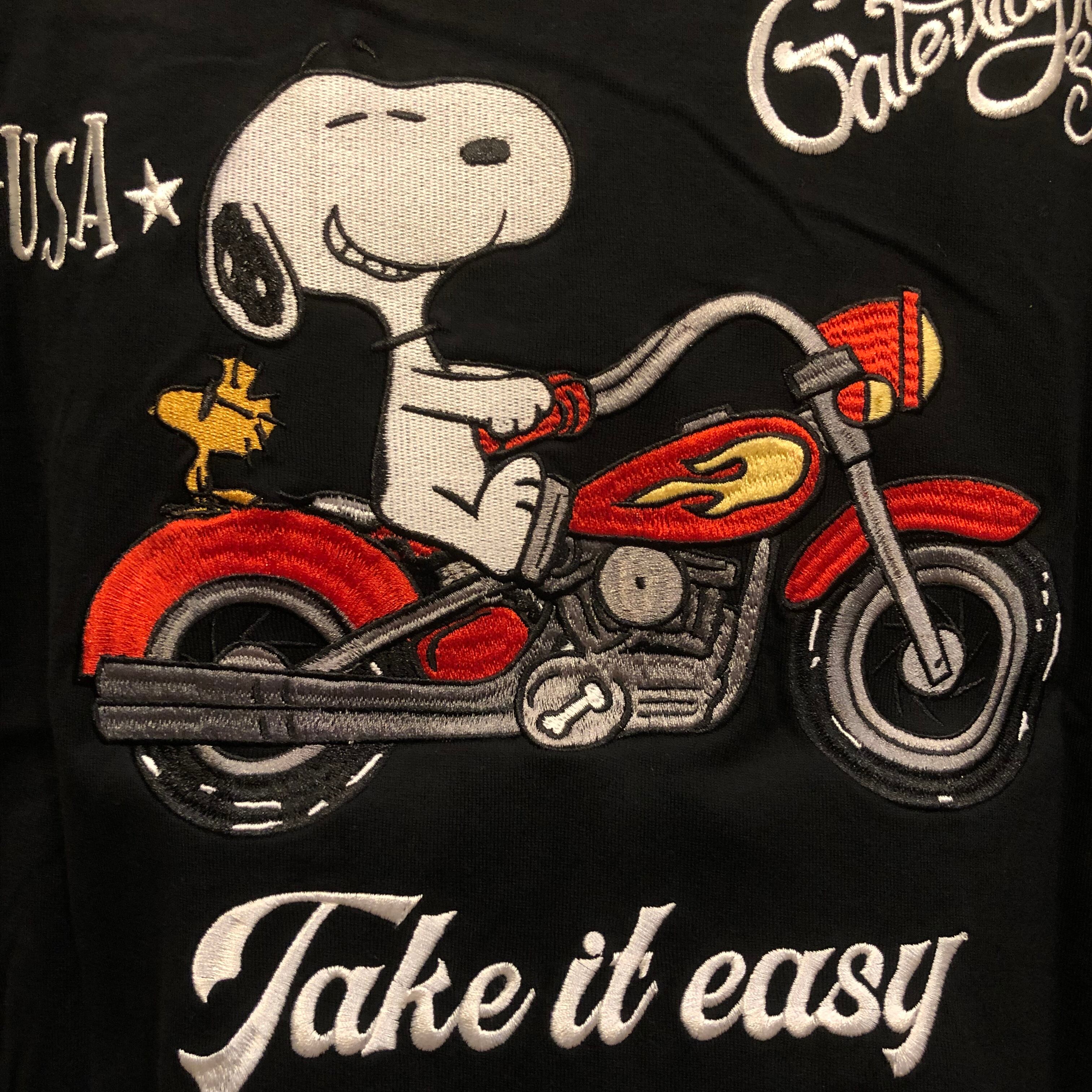 スヌーピー とバイクのデザインで男女問わず毎年好評を得ているシリーズです。柄は全て刺繍で施されております。
