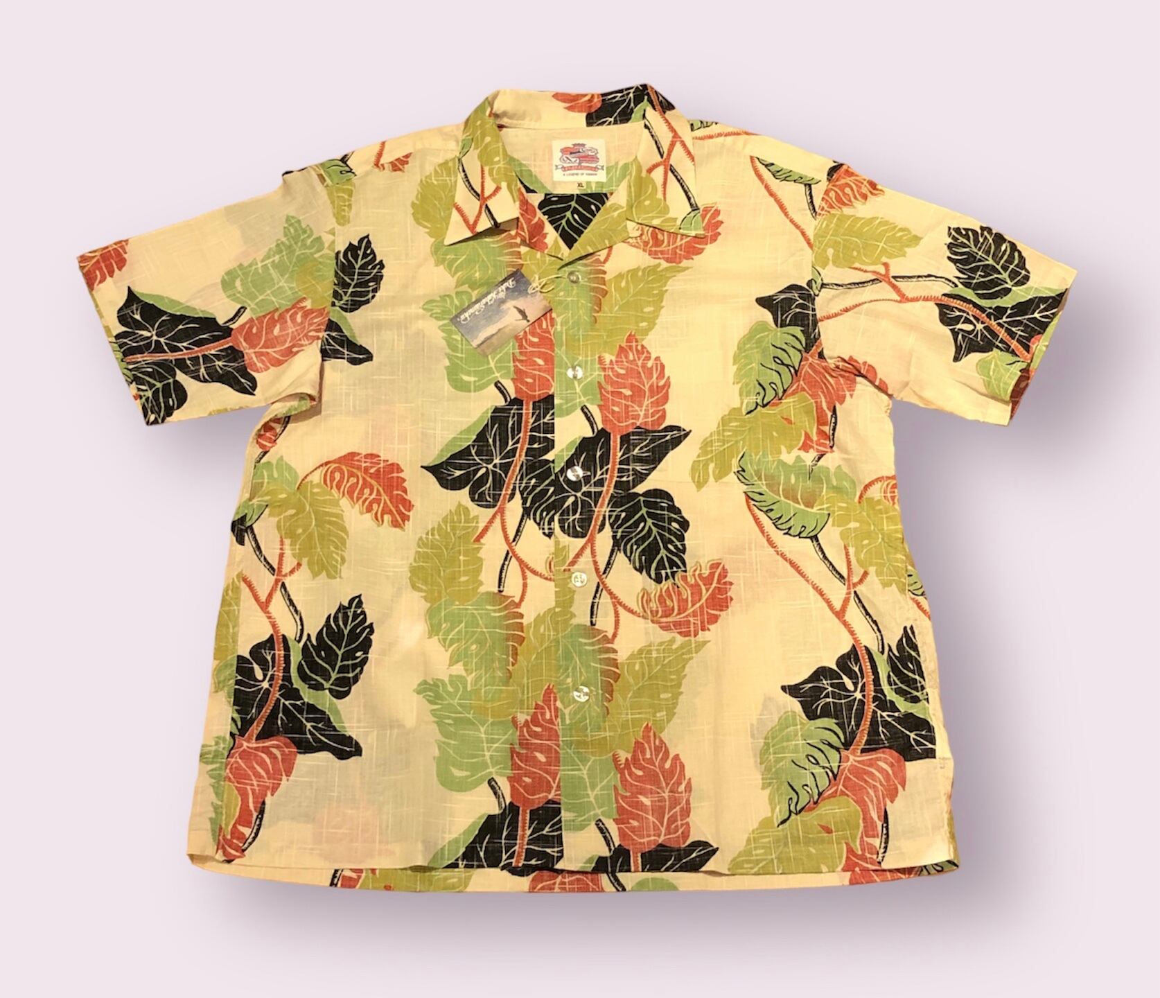 映画『地上より永遠に』で主演のモンゴメリー・クリフトが着用した有名なデザイン。モチーフとなっているのはハワイの植物モンステラ。職人の卓越した技術によって、葉の陰影も抜染によるグラデーションでコットンリネン生地に見事に染め抜かれている。